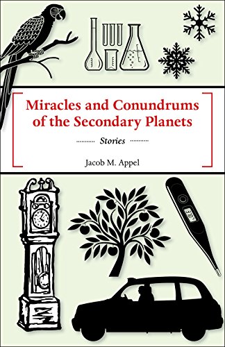 3 of 3 people found the following review helpful. Another great book from Dr. Appel! By Carlos T. Mock Miracles and Conundrums of the Secondary Planets by Jacob M. AppelThis book contains a collections of eight short stories that are not only eccentric, but also, quite entertaining.Dr. Appel starts us with the title short story: Miracles and Conundrums of the Secondary Planets, in which Zigfrids (Red Ziggy) Imants Lenc is sent from his home planet to "survey" Earth. Ziggy assumes a Latvian identity and opens a Latvian Cafe; Cafe Riga in the middle of Lummings Alabama right next to the only abortion clinic in town. He divides his customers into two sides: pro and anti choice. It all goes well until one day, Erin Gwench, of Saint Agatha's College in Creve Coeur, R I., sits at his cafe. Because Ziggy has been impartial, Erin gives Ziggy a book to read: Life: Miracle and Conundrum. One thing leads to another; Erin asks Ziggy to teach him Latvian....What eventually happens is that Ziggy experiences love: that human reaction not known in his planet.In Phoebe with Impending Frost Dr. Appel shows what lengths William (Billy) Deutsch will go to recapture the fire of a long lost love, Phoebe Marboe Williams, who is now married with children.In Invasive Species, Dr. Appel explores the realm of the afterlife as a young child, Celeste Eyche is fighting end stage leukemia. Their grandfather's clock becomes a portal where both worlds collide.In The Resurrection Bakeoff, people start resurrecting out of the blue and Charles Windham, a physician whose wife, Amber, is in end state cancer disease wants to compete in the state fair pie contest, but Charles is afraid that his affair becomes known by his dying wife because the woman whom he had an affair with, Rochelle Logan, may come back from the dead to expose his indiscretion.In The Orchard, Dr. Appel presents a widow who answers an add to work in an Orchard in Connecticut. As it turns out, she falls in love with the owner, Grover (Happy) Gallows - to find out that Happy is now also dying from cancer.in The Grand Concourse - a crazy woman who tried to drown herself gets a pass to go to an apartment in the Bronx where her grandparents died and realizes that perhaps her grandfather committed suicide.In Measures of sorrow, a graduate student tutors an immigrant of a nation that no longer exits, Ollie, so that he can win the heart of Laurah Townsend, a beautiful graduate student at his university. The tutor learns that he's the one who is the student....In Shell game with Organs, a magician, Bill Steinberg, a. k. a. Sleepy Santini must juggle his relationship with a dying mother, his relationship with his girlfriend who needs one of his kidneys to survive, and his relationship with his bird, Houdini.The stories are narrated from the first person point of view and read quite easily. They are quite entertaining and deal with many genres; from science fiction to death and dying, mental illness. I just loved it!